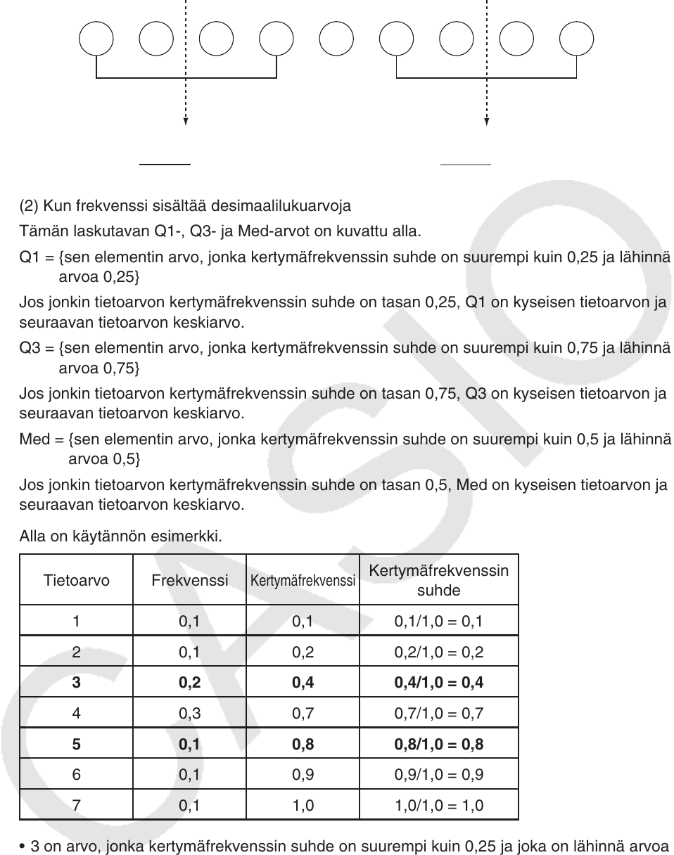 • 3 on arvo, jonka kertymäfrekvenssin suhde on suurempi kuin 0,25 ja joka on lähinnä arvoa