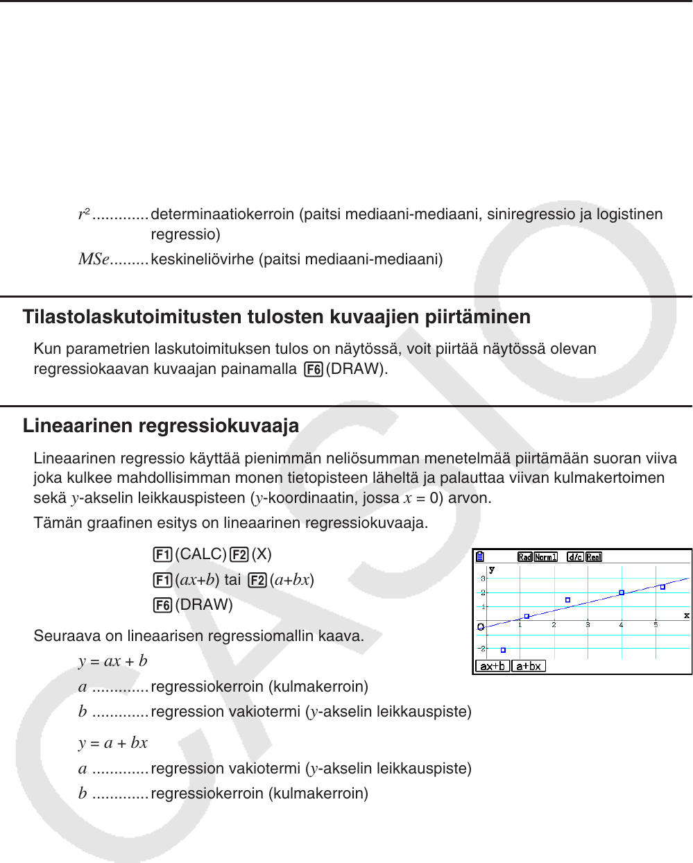 lineaarisessa regressiossa y = ax + b ) laskutoimituksen tulokset näkyvät näytössä.