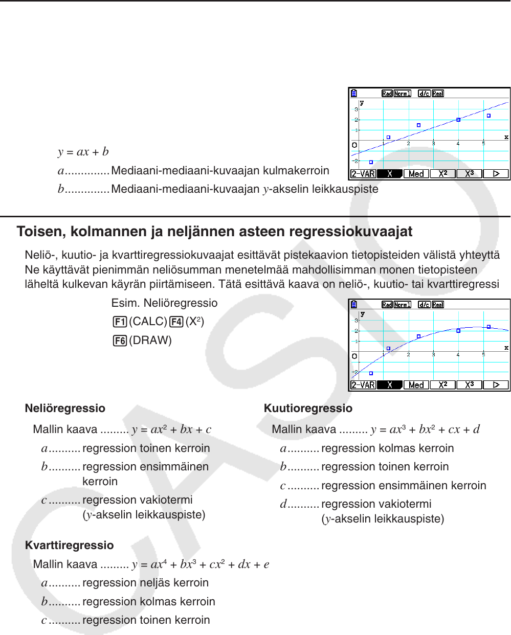 k Toisen, kolmannen ja neljännen asteen regressiokuvaajat