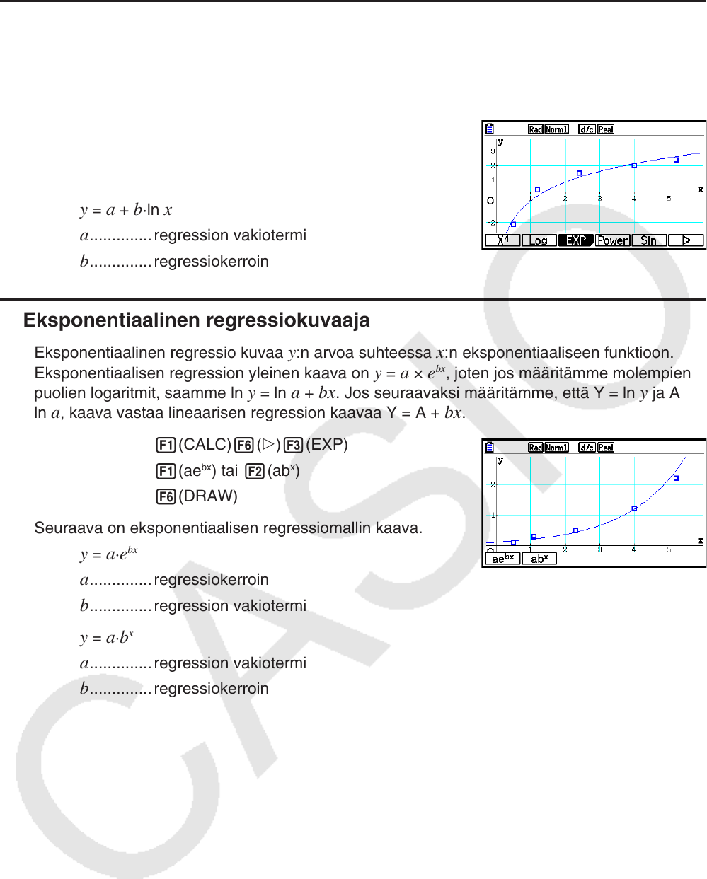regression tavallinen kaava on y = a + b × ln x , joten jos X = ln x , kaava vastaa lineaarista