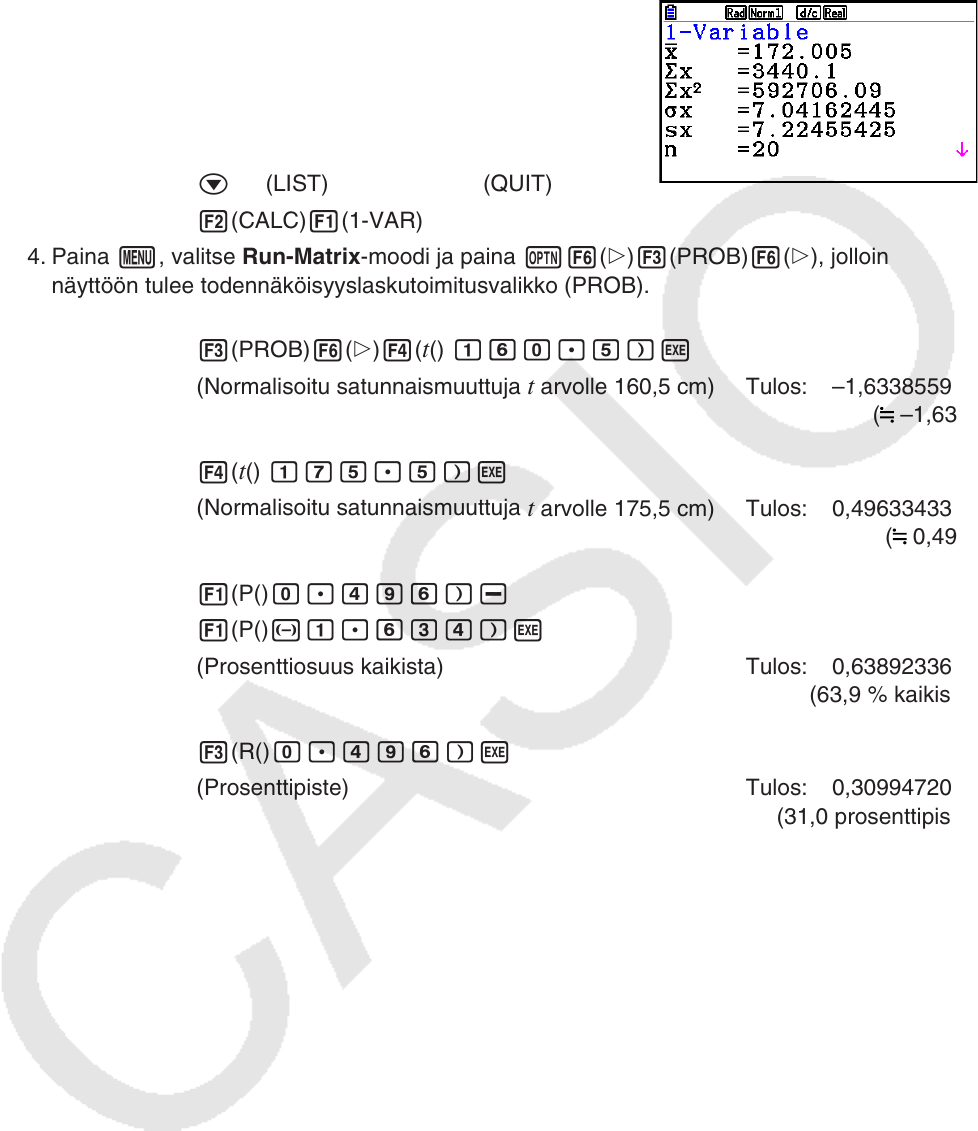 4. Paina m, valitse Run-Matrix -moodi ja paina K6( g) 3(PROB)6( g), jolloin