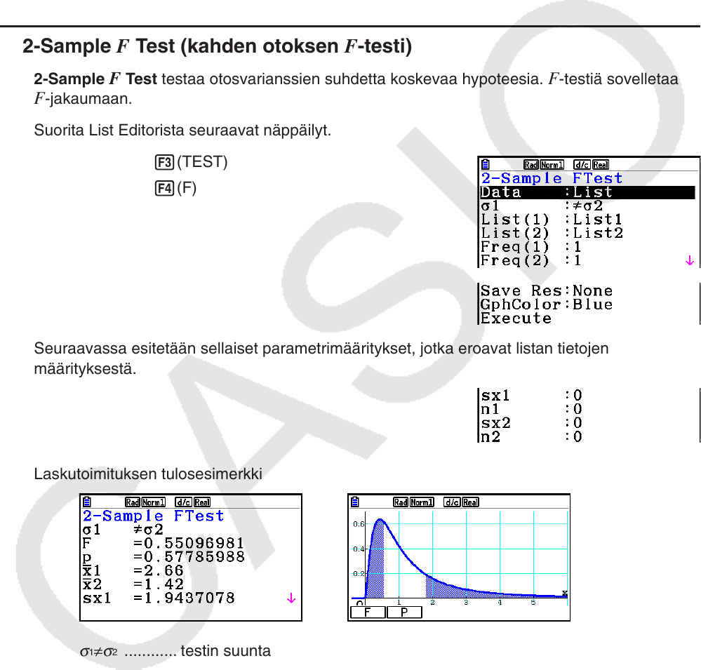 2-Sample F Test testaa otosvarianssien suhdetta koskevaa hypoteesia. F -testiä sovelletaan