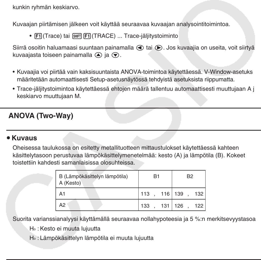 • Kuvaajia voi piirtää vain kaksisuuntaista ANOVA-toimintoa käytettäessä. V-Window-asetukset