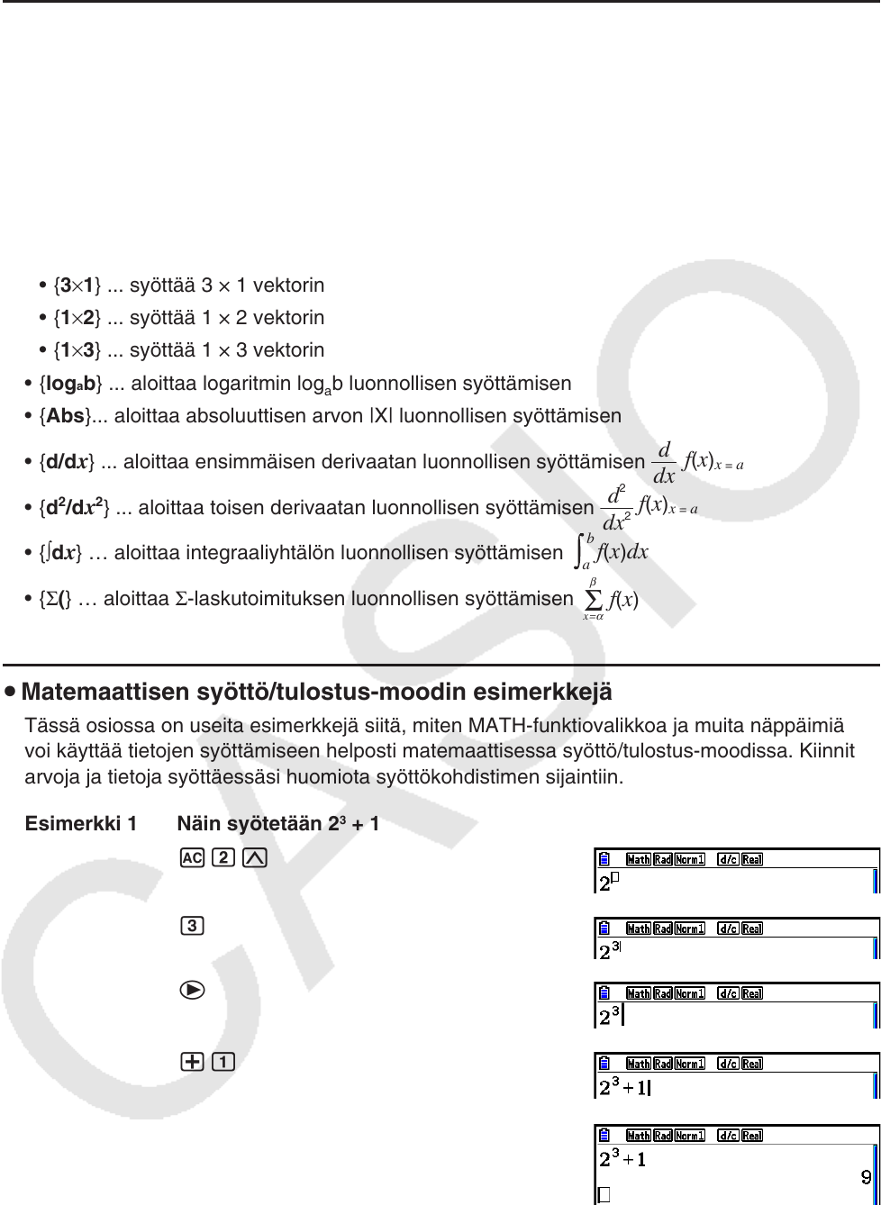 voi käyttää tietojen syöttämiseen helposti matemaattisessa syöttö/tulostus-moodissa. Kiinnitä