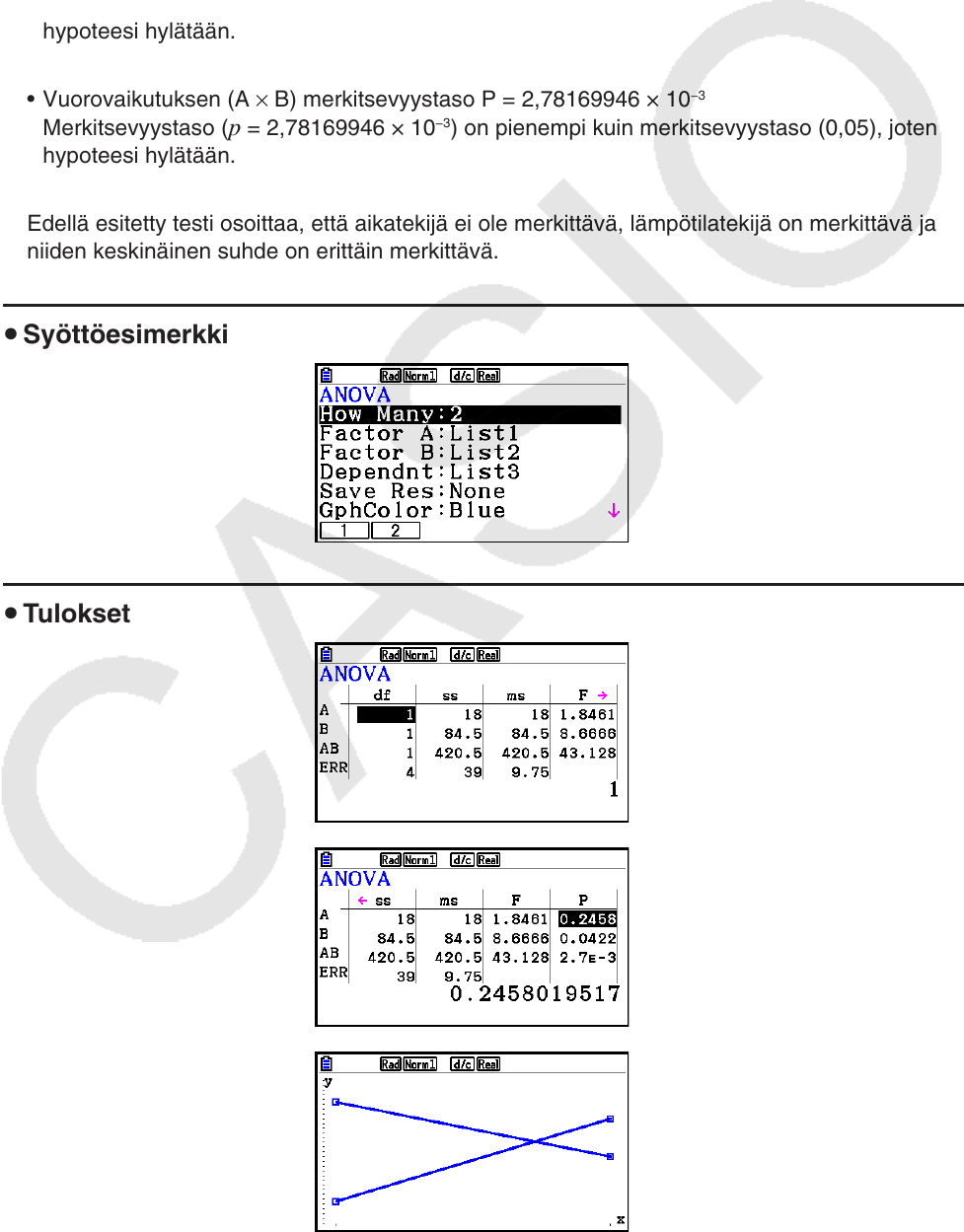 • Vuorovaikutuksen (A × B) merkitsevyystaso P = 2,78169946