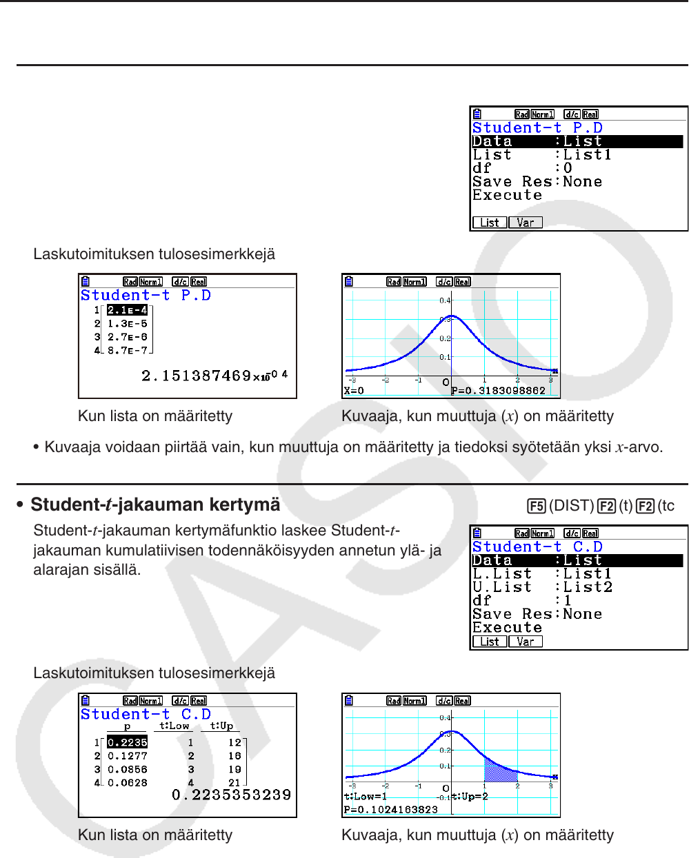 • Student- t -todennäköisyystiheys 5(DIST) 2(t) 1(tpd)