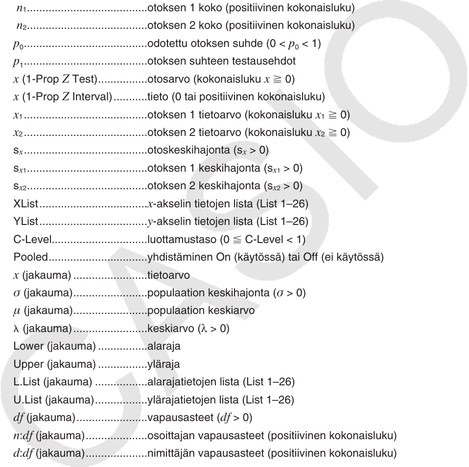 n : df (jakauma) ....................osoittajan vapausasteet (positiivinen kokonaisluku)