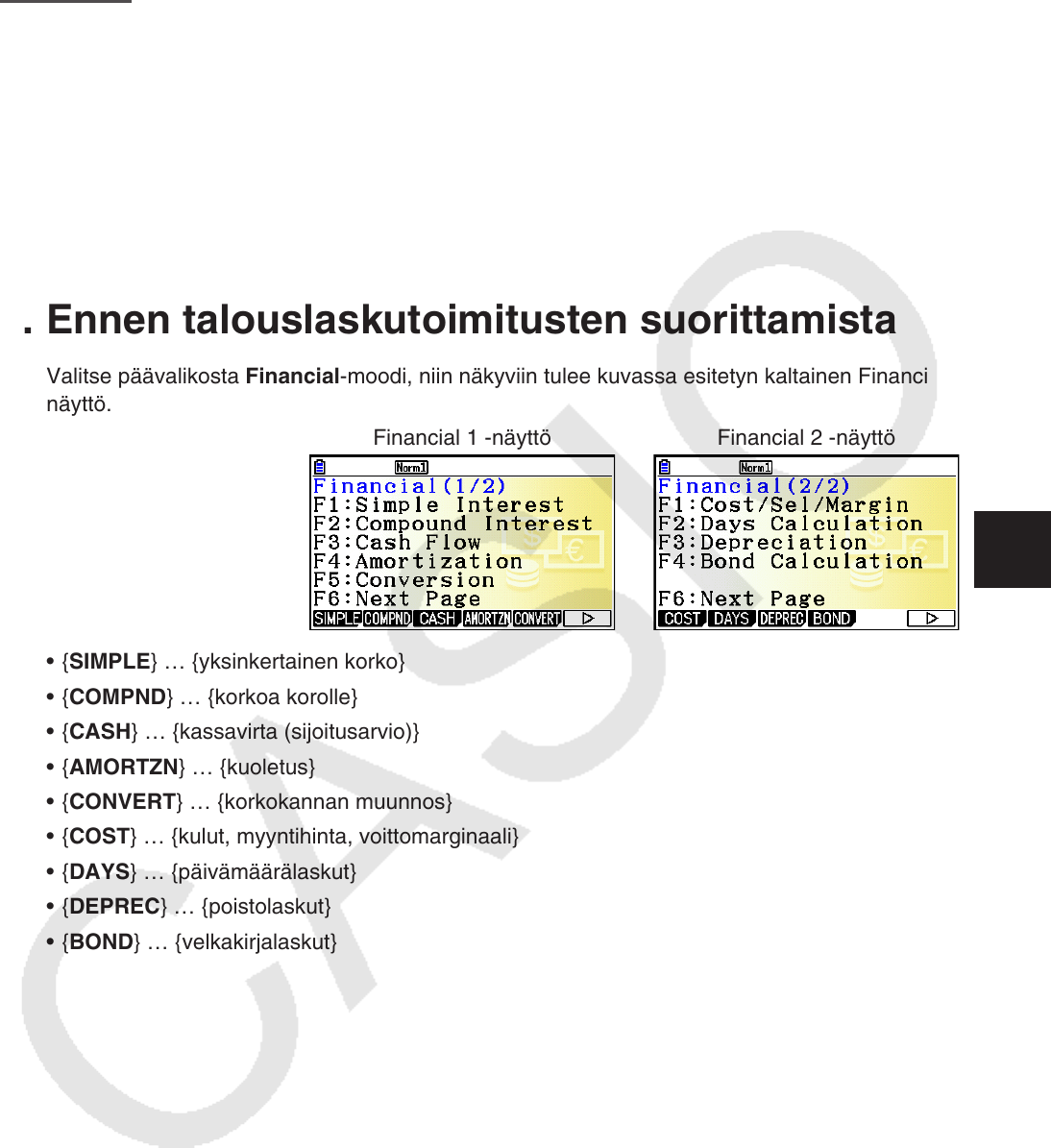 • Muista aina varsinaisia taloudellisia laskutoimituksia suorittaessasi verrata kaikkia tällä laskimella