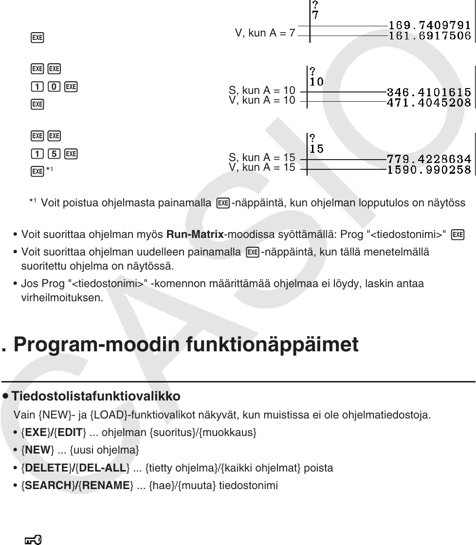 • { EXE } / { EDIT } ... ohjelman {suoritus}/{muokkaus}