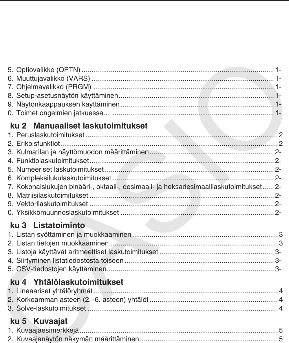 4. Matemaattisen syöttö/tulostus-moodin käyttäminen ................................................... 1-15