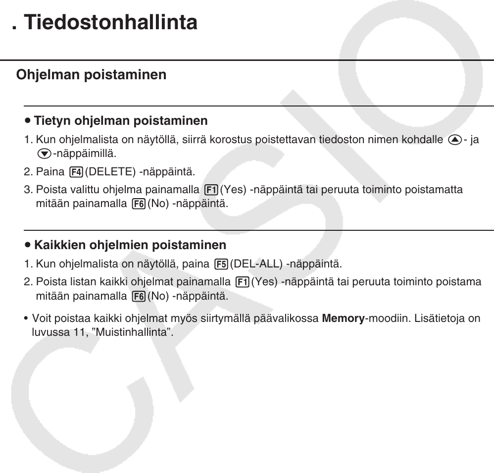 • Voit poistaa kaikki ohjelmat myös siirtymällä päävalikossa Memory -moodiin. Lisätietoja on