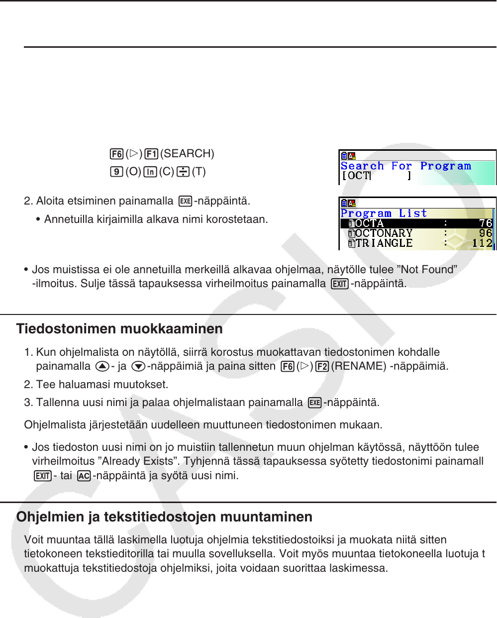 muokattuja tekstitiedostoja ohjelmiksi, joita voidaan suorittaa laskimessa.