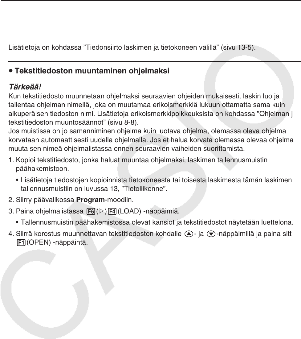 Kun tekstitiedosto muunnetaan ohjelmaksi seuraavien ohjeiden mukaisesti, laskin luo ja