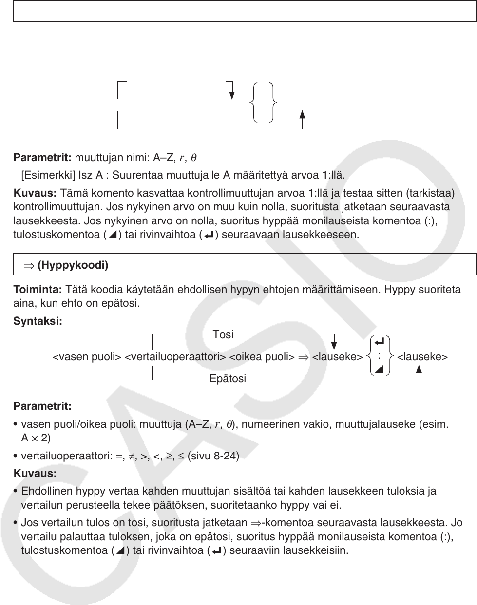 Toiminta: Tämä komento on laskentahyppy, joka suurentaa kontrollimuuttujan arvoa 1:llä ja