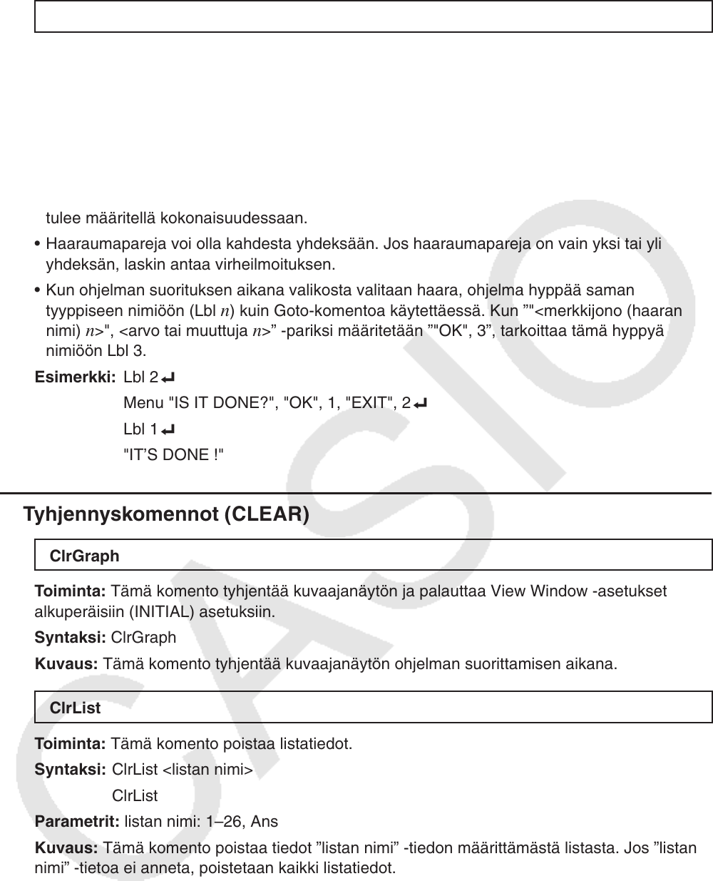 Kuvaus: Tämä komento tyhjentää kuvaajanäytön ohjelman suorittamisen aikana.