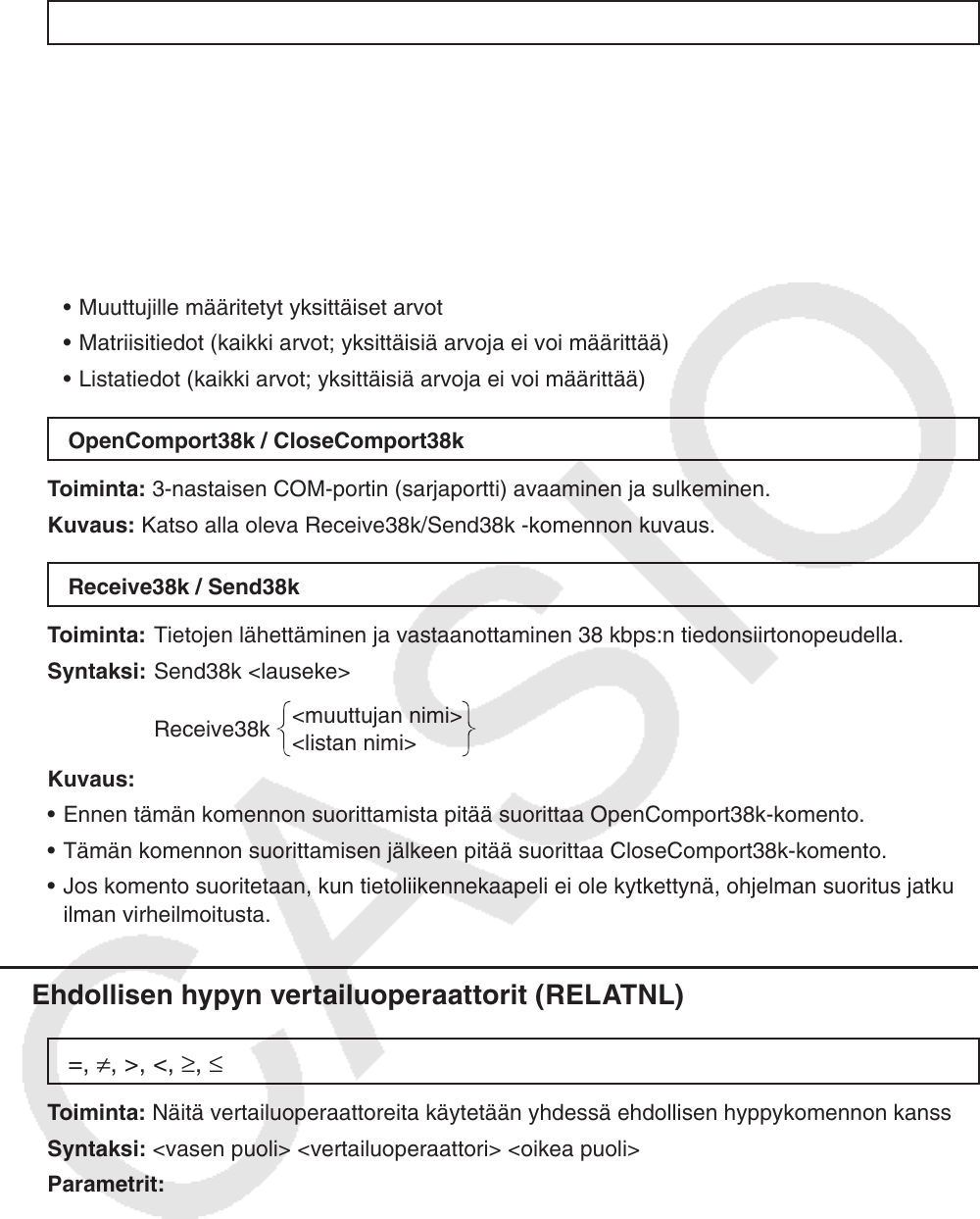 k Ehdollisen hypyn vertailuoperaattorit (RELATNL)