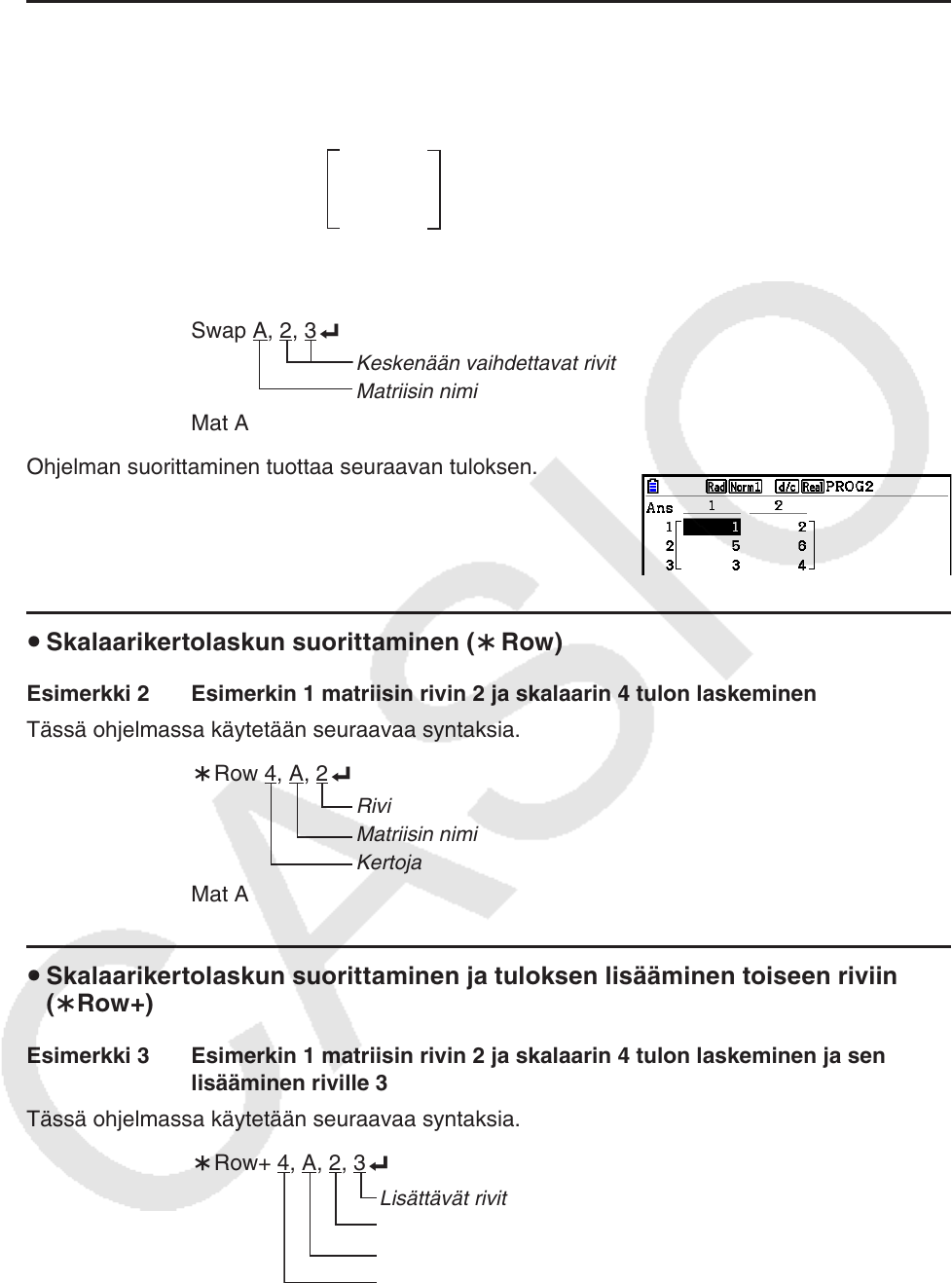 Esimerkki 3 Esimerkin 1 matriisin rivin 2 ja skalaarin 4 tulon laskeminen ja sen