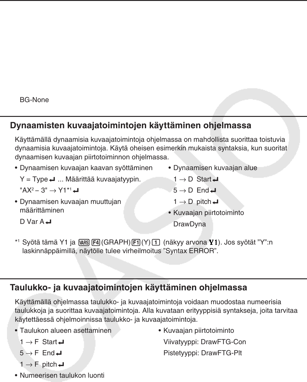 dynaamisia kuvaajatoimintoja. Käytä oheisen esimerkin mukaista syntaksia, kun suoritat