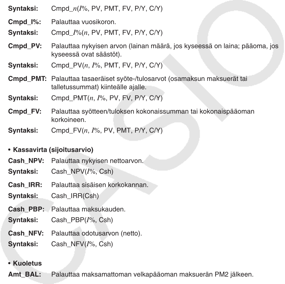 • Jos suoritat laskennan, jossa käytetään jotakin koronkorkofunktiota (Cmpd_n(, Cmpd_I%(,