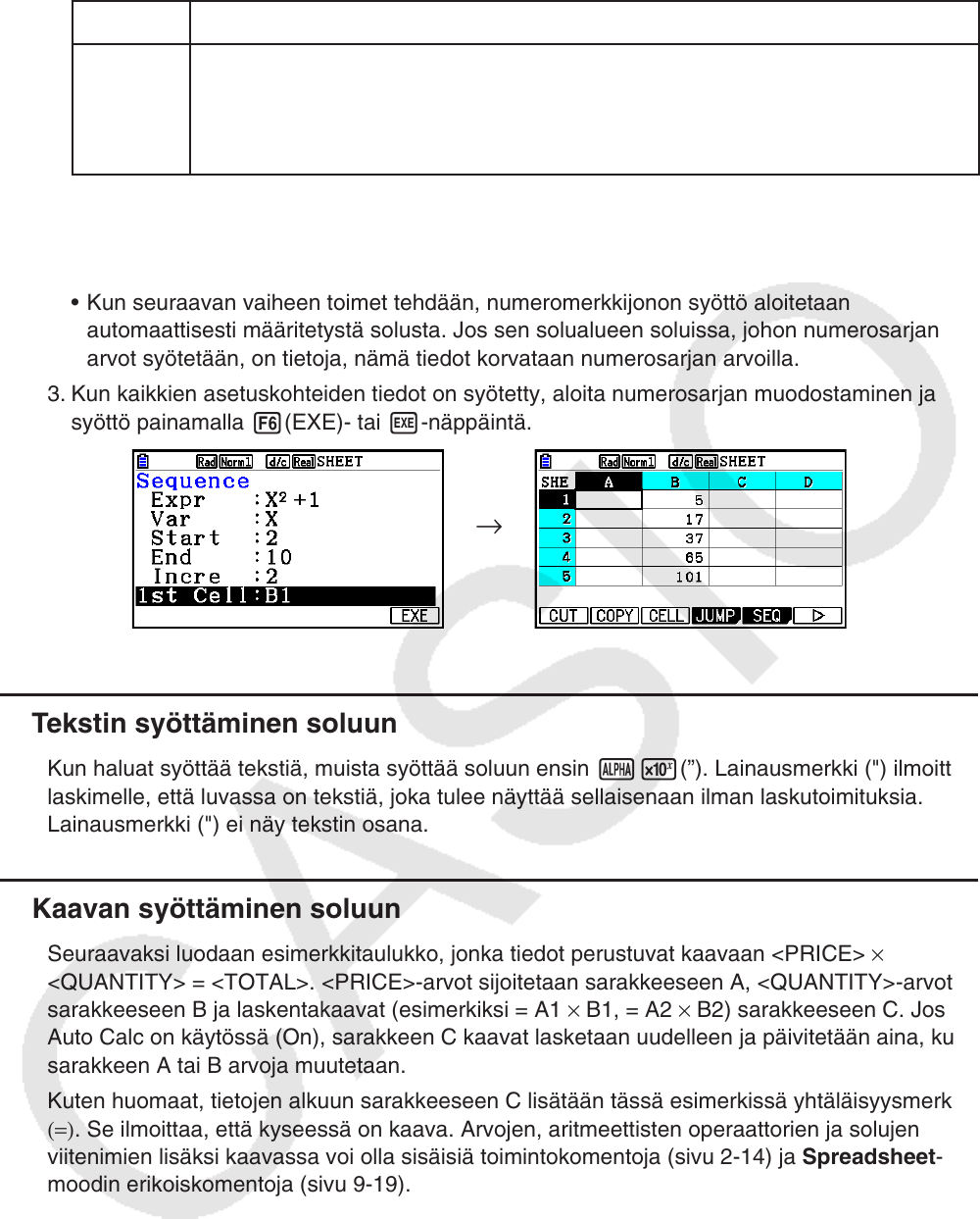 viitenimien lisäksi kaavassa voi olla sisäisiä toimintokomentoja (sivu 2-14) ja Spreadsheet-