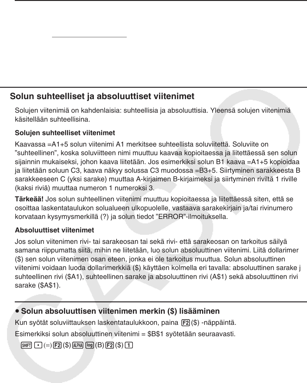 ”suhteellinen”, koska soluviitteen nimi muuttuu kaavaa kopioitaessa ja liitettäessä sen solun