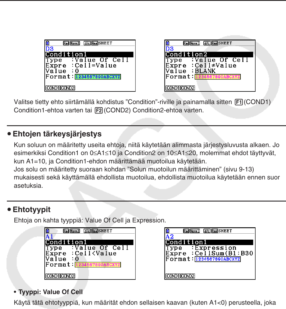 Valitse tietty ehto siirtämällä kohdistus ”Condition”-riville ja painamalla sitten 1(COND1)