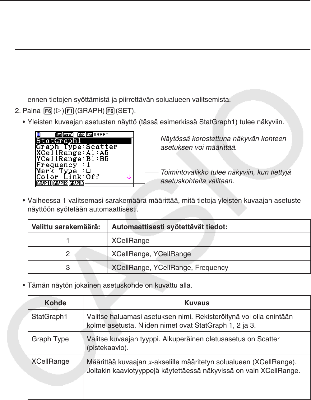 • Yleisten kuvaajan asetusten näyttö (tässä esimerkissä StatGraph1) tulee näkyviin.
