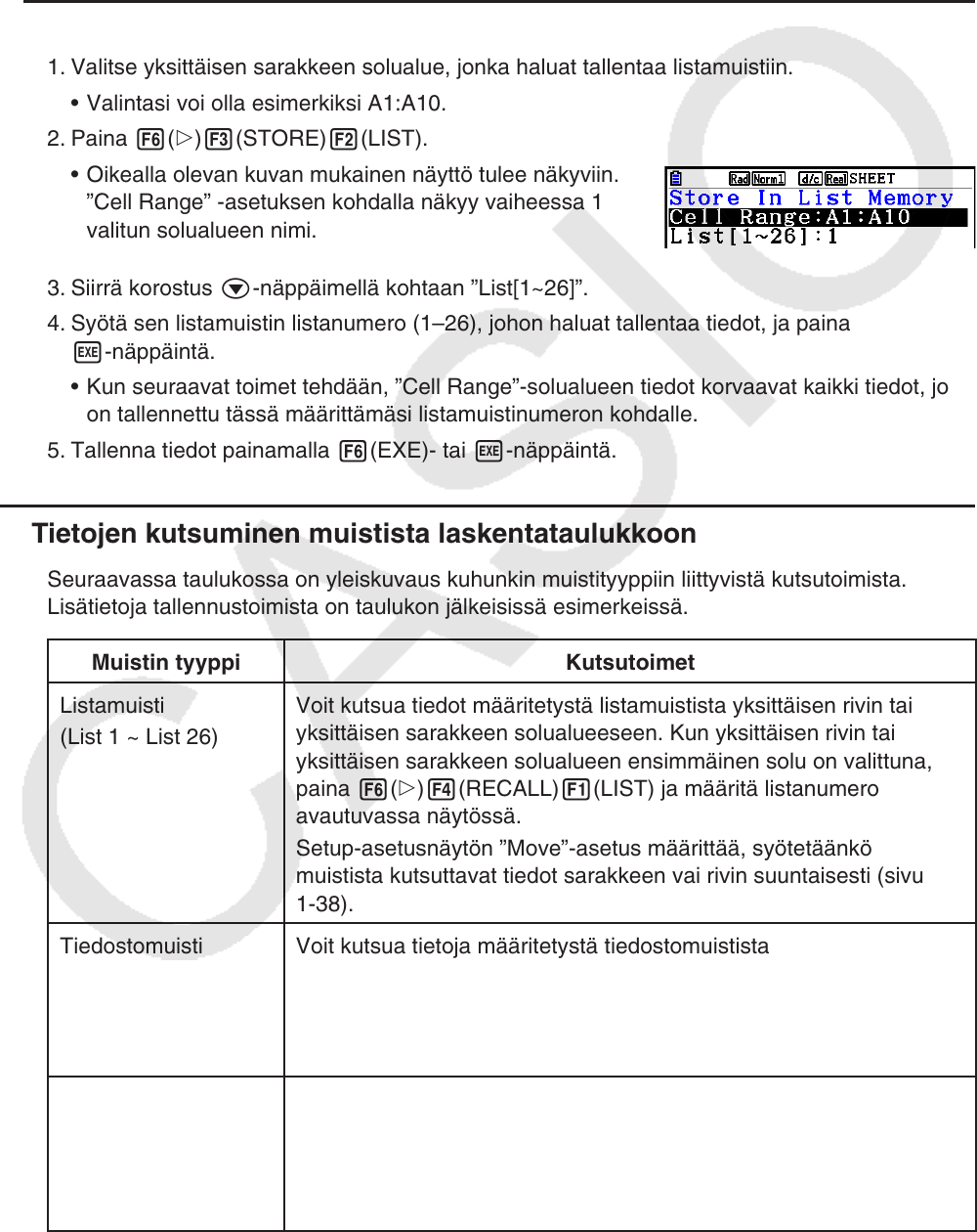 5. Tallenna tiedot painamalla 6(EXE)- tai w-näppäintä.