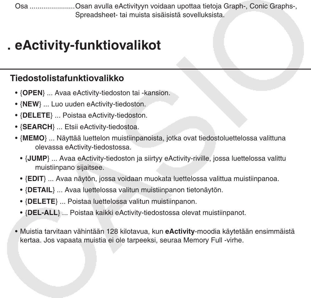 • { DELETE } ... Poistaa eActivity-tiedoston.