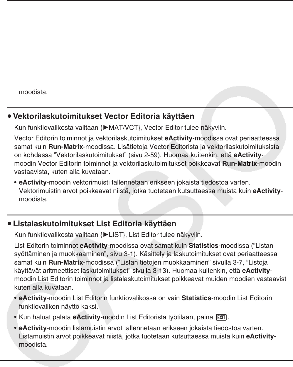 on kohdassa ”Vektorilaskutoimitukset” (sivu 2-59). Huomaa kuitenkin, että eActivity-