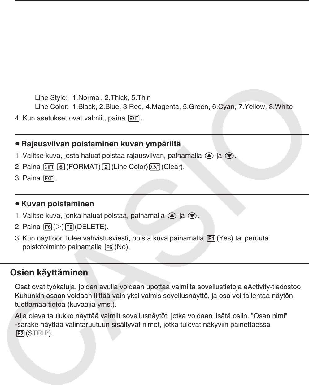 • Seuraavassa on esitetty Line Style- ja Line Color -asetukset.