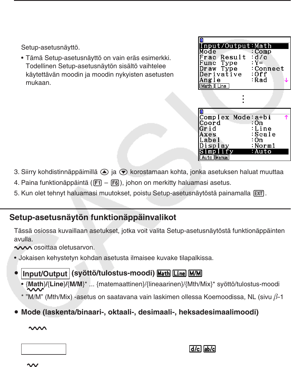 • {Math}/{Line}/{M/M}* ... {matemaattinen}/{lineaarinen}/{Mth/Mix}* syöttö/tulostus-moodi