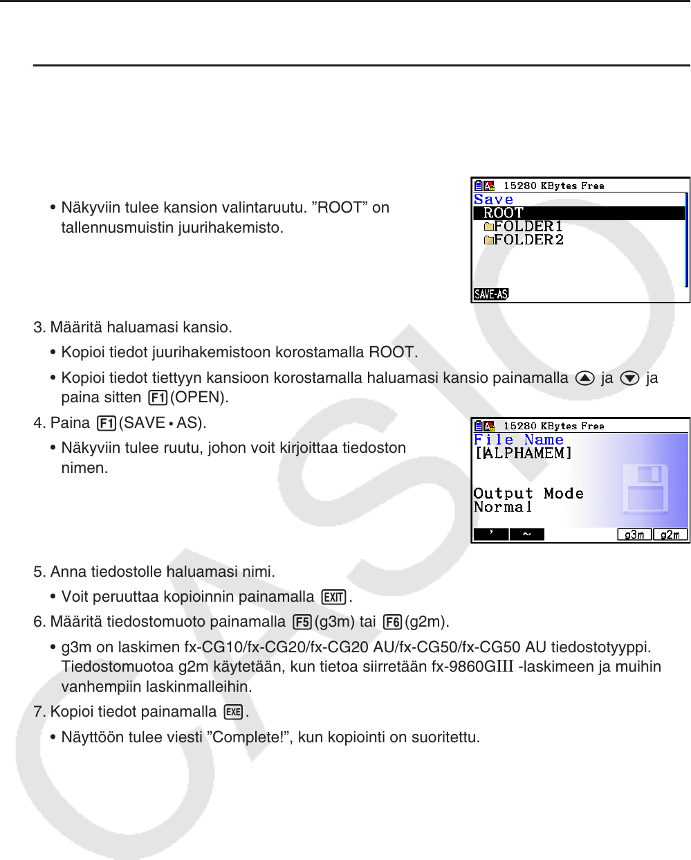 • g3m on laskimen fx-CG10/fx-CG20/fx-CG20 AU/fx-CG50/fx-CG50 AU tiedostotyyppi.