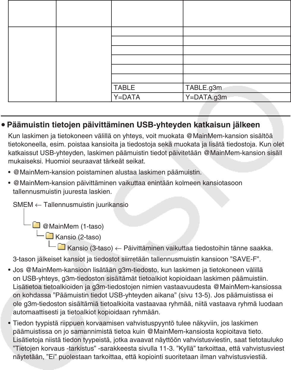 • Jos @MainMem-kansioon lisätään g3m-tiedosto, kun laskimen ja tietokoneen välillä