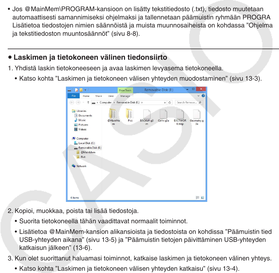 • Jos @MainMem-kansiossa on lisäominaisuustiedosto (.g3a/.g3l), tiedosto siirretään