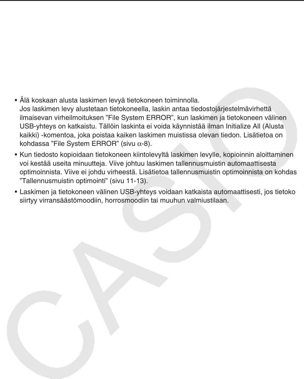 • Älä koskaan alusta laskimen levyä tietokoneen toiminnolla.