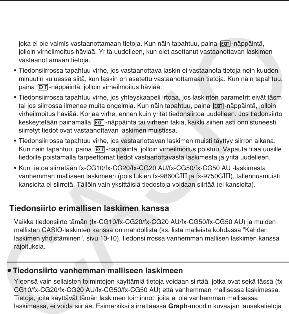 • Kun tietoa siirretään fx-CG10/fx-CG20/fx-CG20 AU/fx-CG50/fx-CG50 AU -laskimesta
