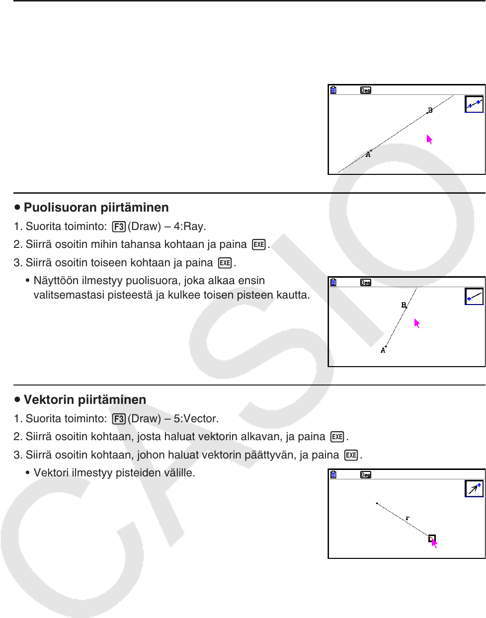 1. Suorita toiminto: 3(Draw) – 4:Ray.