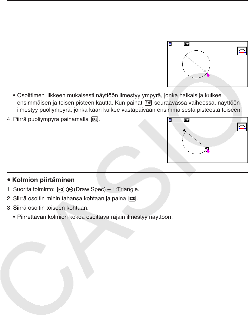 • Piirrettävän kolmion kokoa osoittava rajain ilmestyy näyttöön.