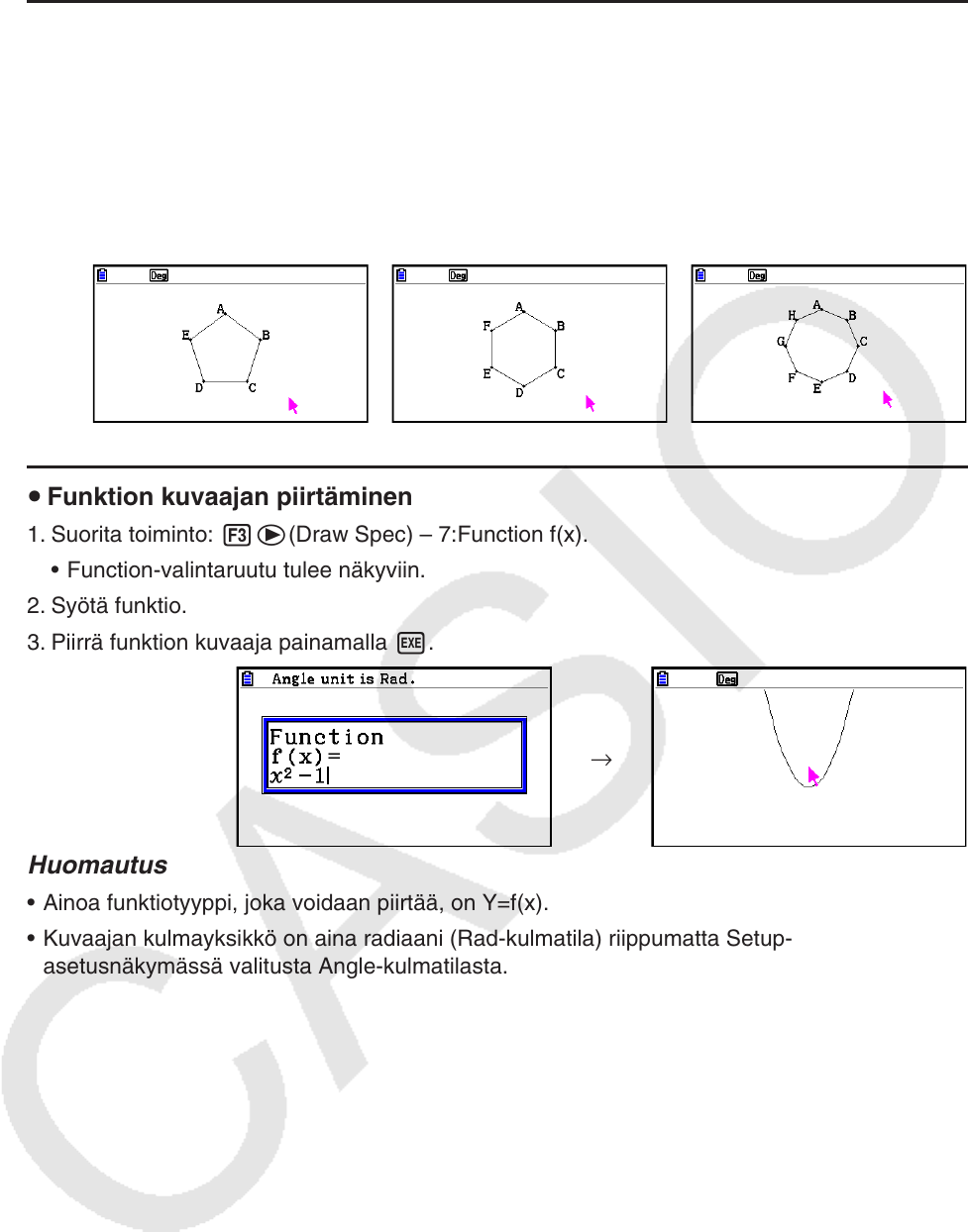 • Kuvaajan kulmayksikkö on aina radiaani (Rad-kulmatila) riippumatta Setup-