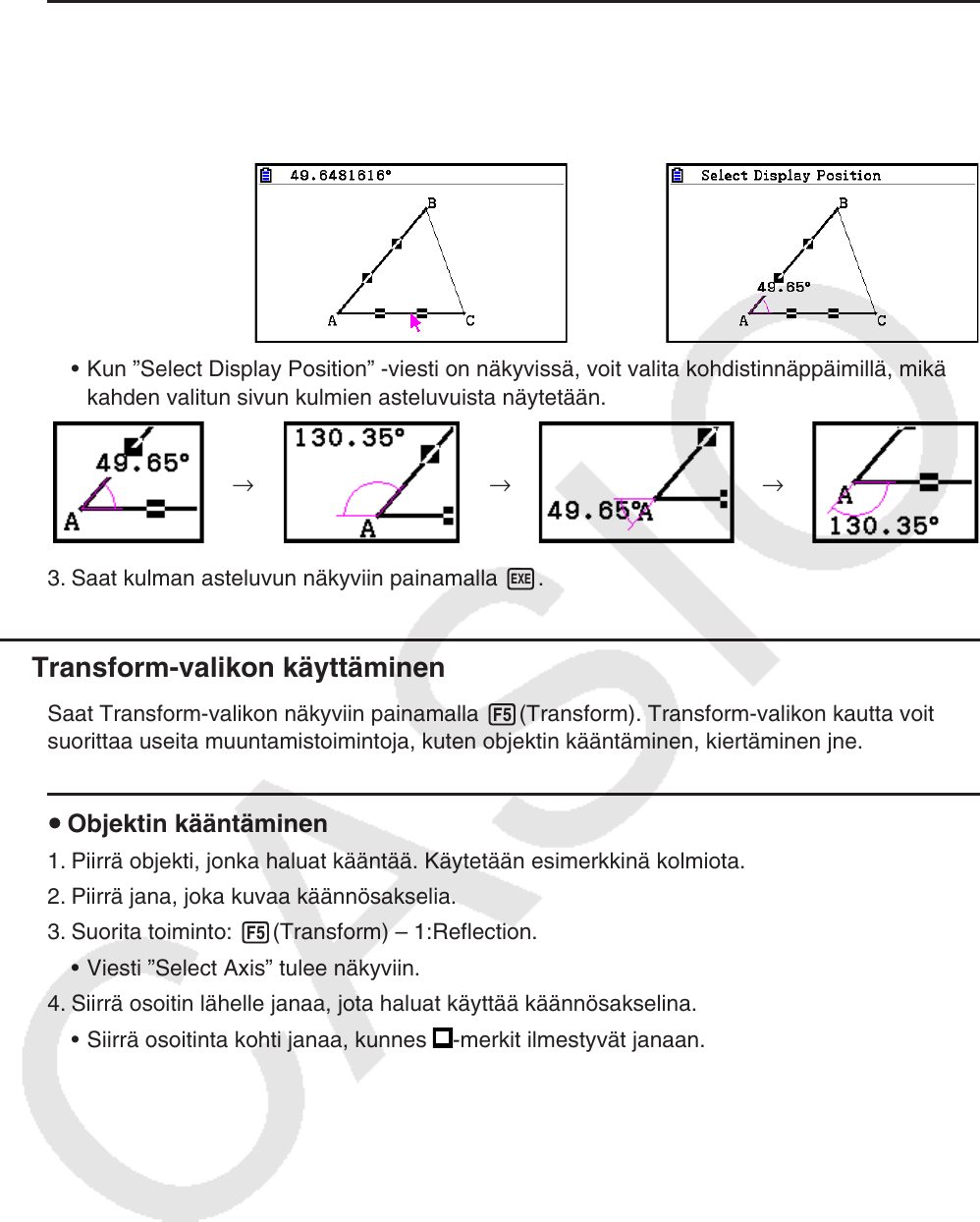 3. Suorita toiminto: 5(Transform) – 1:Reflection.