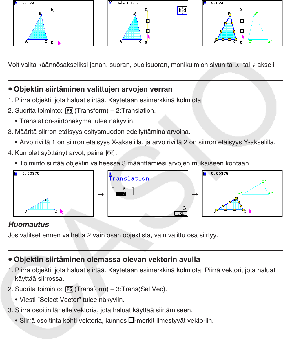Voit valita käännösakseliksi janan, suoran, puolisuoran, monikulmion sivun tai x- tai y-akselin.