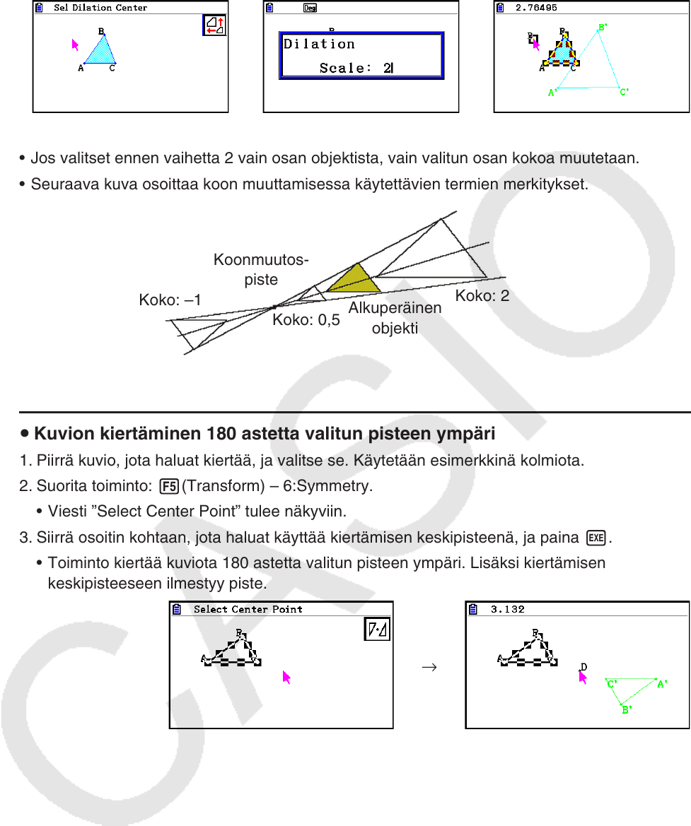 • Toiminto kiertää kuviota 180 astetta valitun pisteen ympäri. Lisäksi kiertämisen