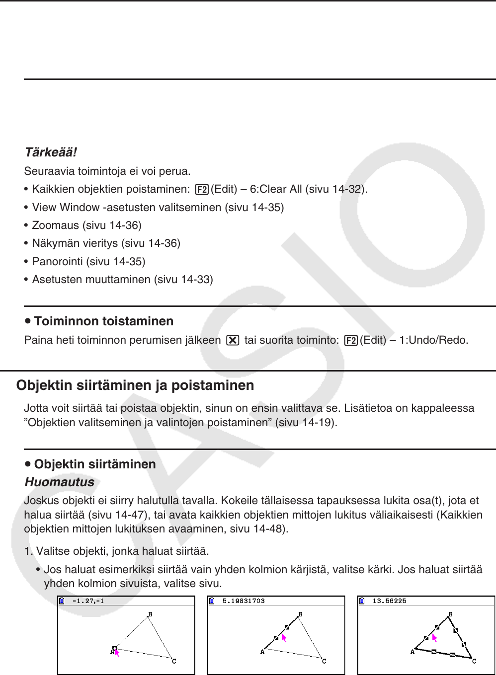• Kaikkien objektien poistaminen: 2(Edit) – 6:Clear All (sivu 14-32).