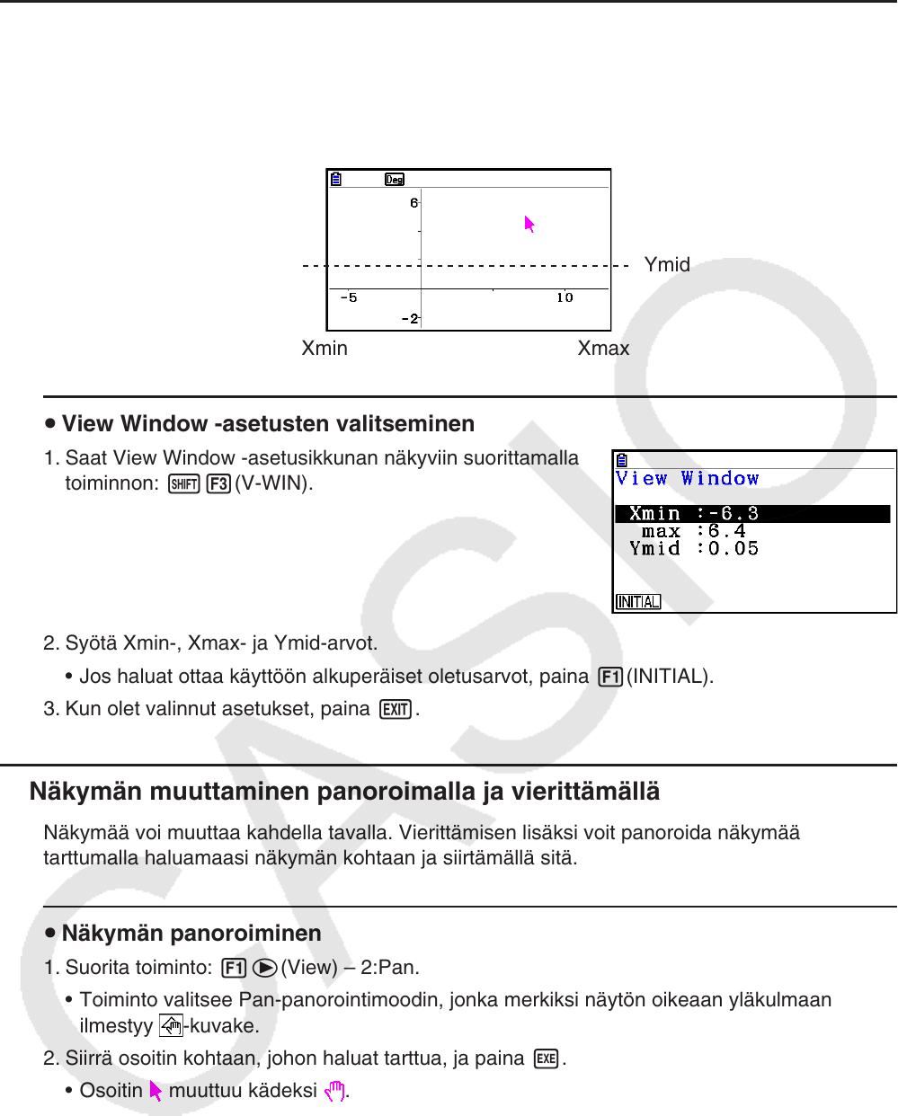 2. Syötä Xmin-, Xmax- ja Ymid-arvot.