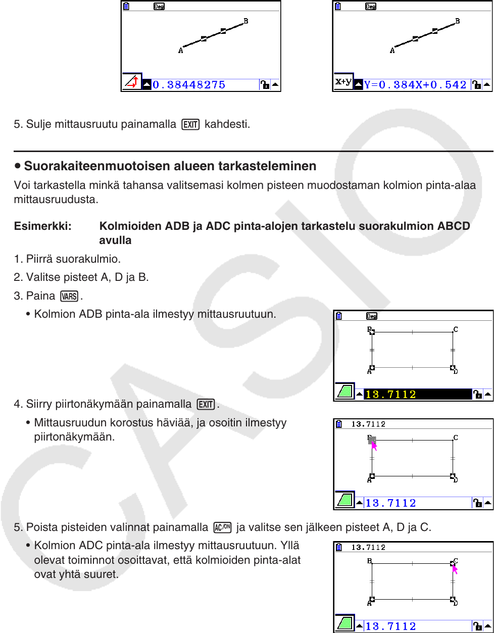 • Kolmion ADB pinta-ala ilmestyy mittausruutuun.