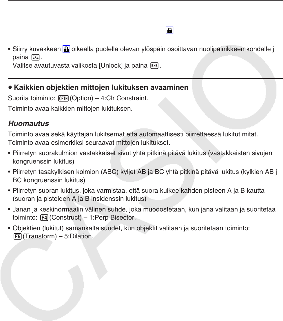 • Piirretyn suorakulmion vastakkaiset sivut yhtä pitkinä pitävä lukitus (vastakkaisten sivujen