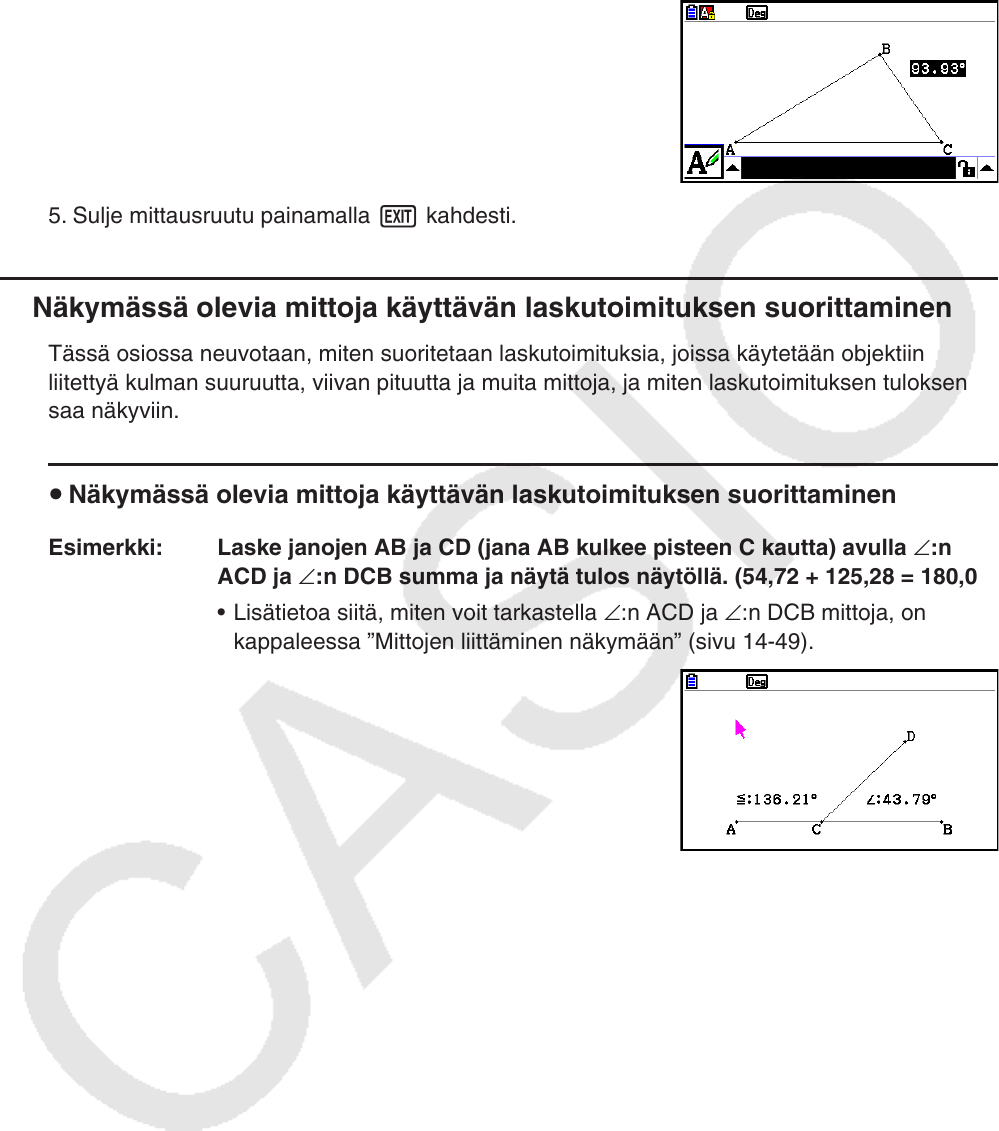 • Lisätietoa siitä, miten voit tarkastella ∠:n ACD ja ∠:n DCB mittoja, on