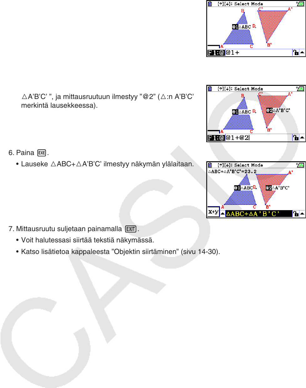 DA’B’C’ ”, ja mittausruutuun ilmestyy ”@2” (D:n A’B’C’
