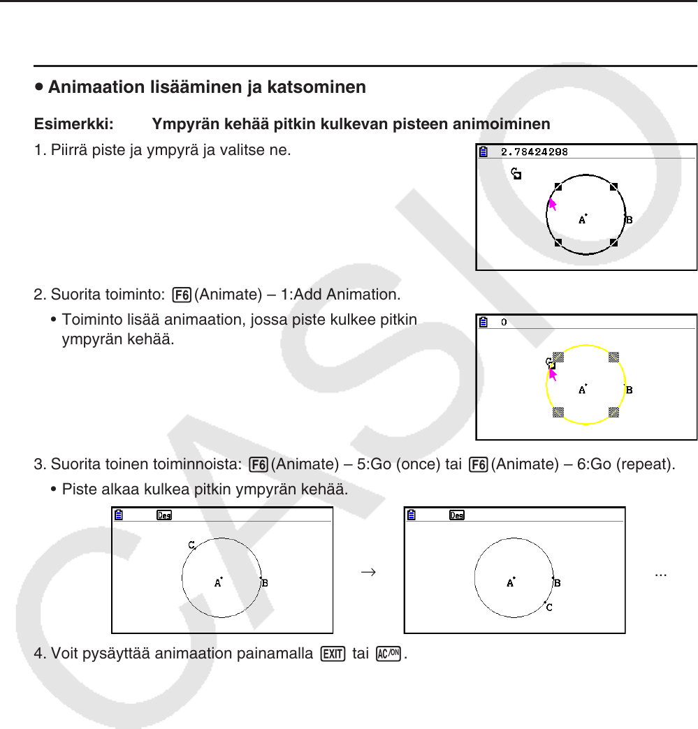 Esimerkki: Ympyrän kehää pitkin kulkevan pisteen animoiminen
